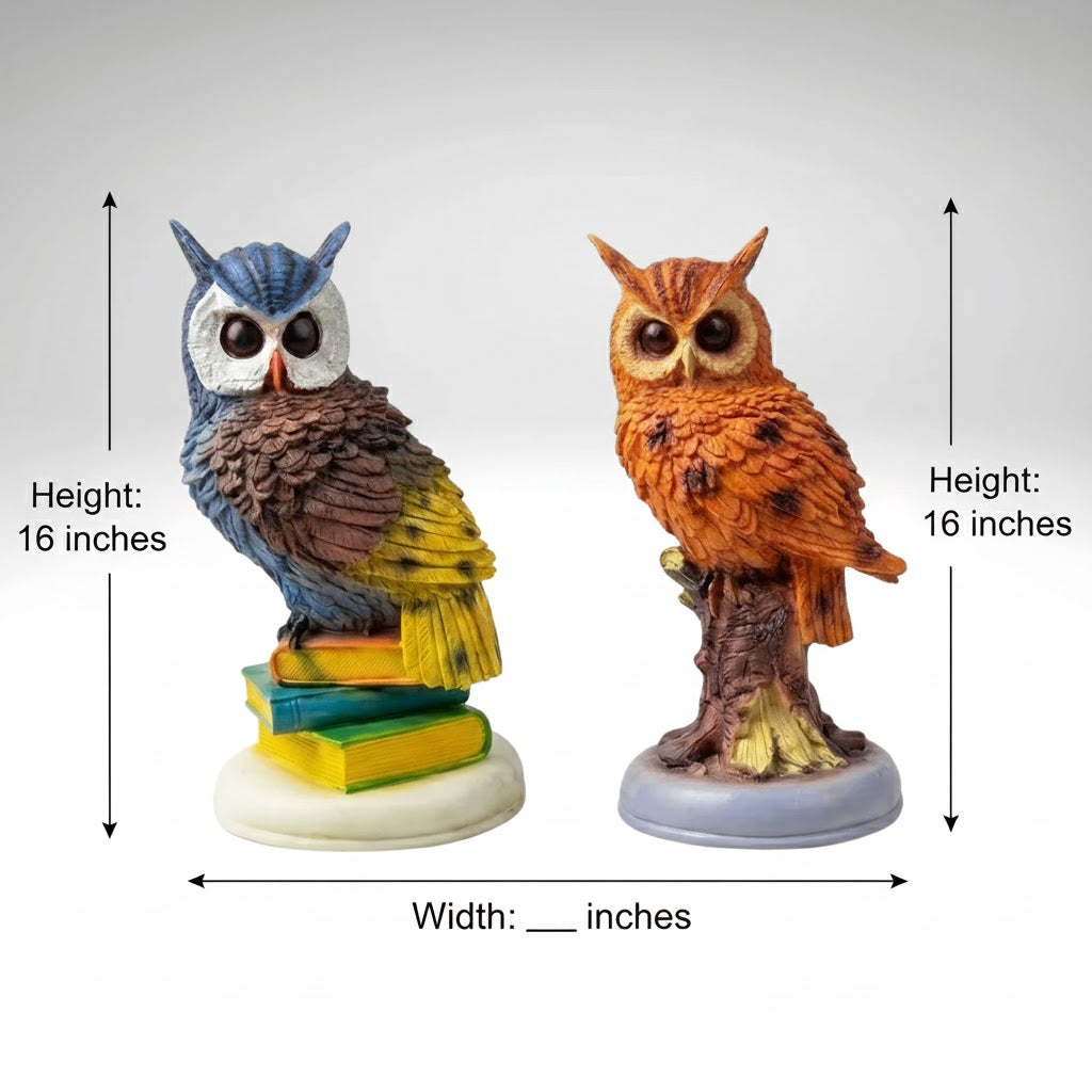 Add a touch of wisdom and charm to your space with this beautiful pair of handcrafted owl figurines. Made from high-quality resin, these 16-inch statues feature intricate detailing and vibrant colors — perfect for enhancing your home, office, study room, or living area décor.